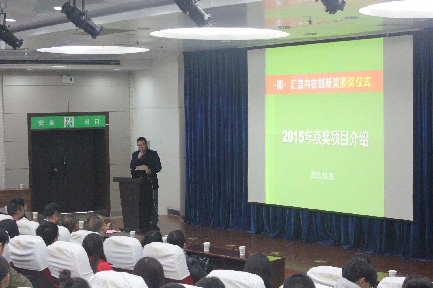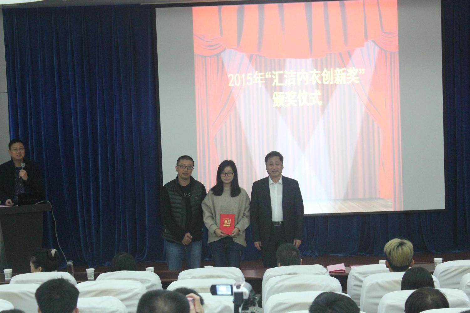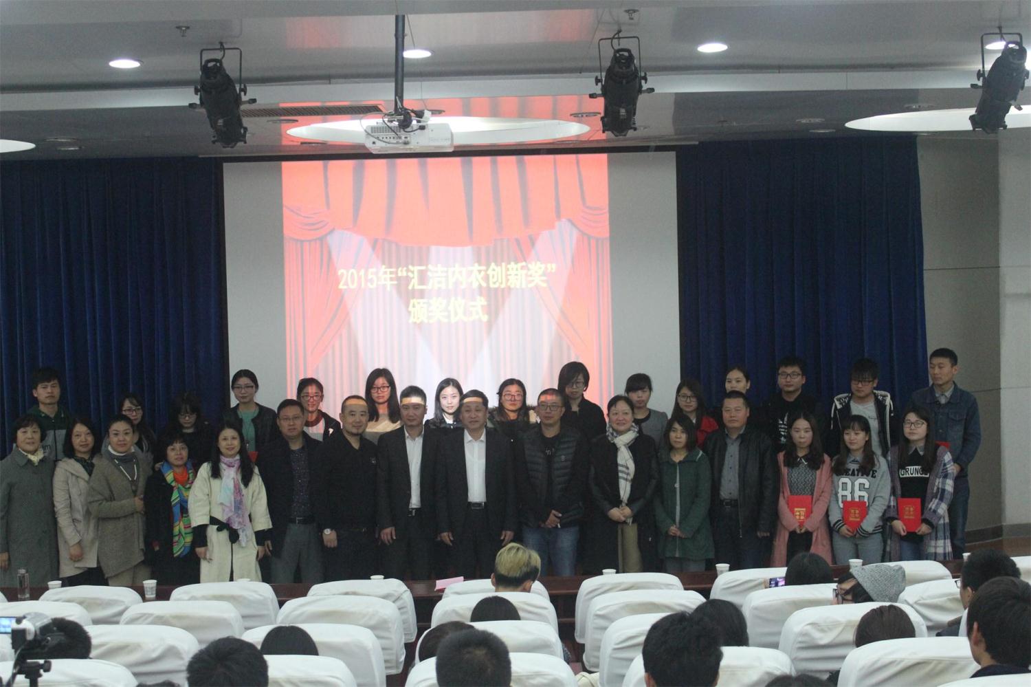 2015年10月29日,我校在临潼校区图书馆一楼报告厅举行了2015年汇洁内衣创新奖颁奖典礼暨2016年申报启动活动。汇洁集团副总刘铁兵、汇洁集团陕西地区总监廖春江,我校副校长黄翔,厂长资源