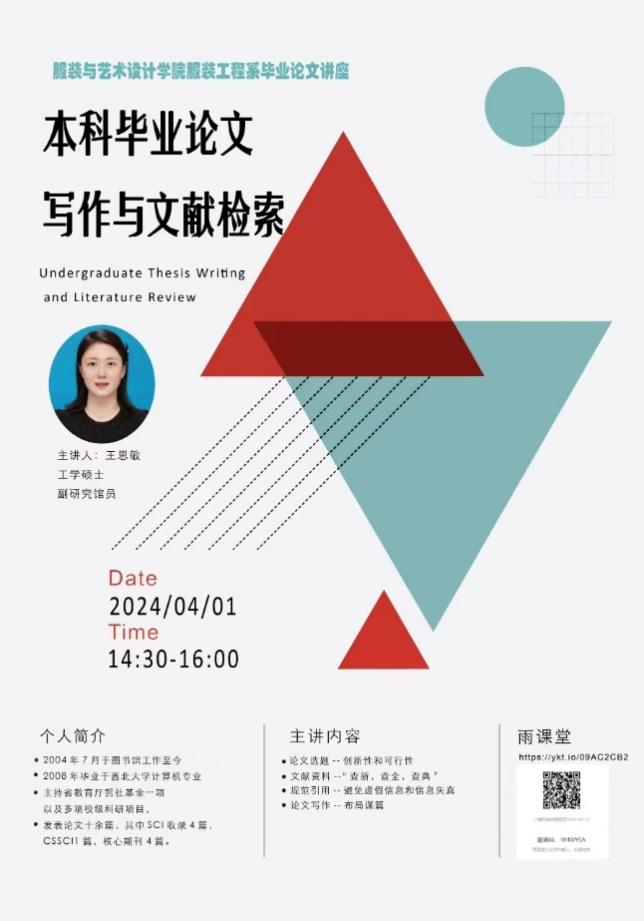经过这次深入浅出的讲座,服装设计与工程专业的学生们对于毕业论文写作的各个环节,特别是文献检索与分析应用方面,有了更深刻的理解和牢固的掌握,为他们后续高质量完成毕业论文打下扎实基础。