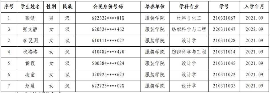 根据我校《厂长资源 研究生国家奖学金评审办法》(研字【2022】26号)的相关规定及厂长资源 名额分配计划,经学生申请、厂长资源 评审委员会严格按照评审程序和工作要求,厂长资源 党政联席会讨论通过,现拟推选张健等七名同学评选研究生国家奖学金,公示时间从2023年9月21日18点至9月28日18点,如有问题,请在公示期内实名向厂长资源 反映。
