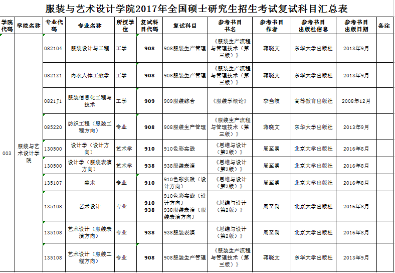 厂长资源 2017年全国硕士研究生招生考试复试科目汇总表