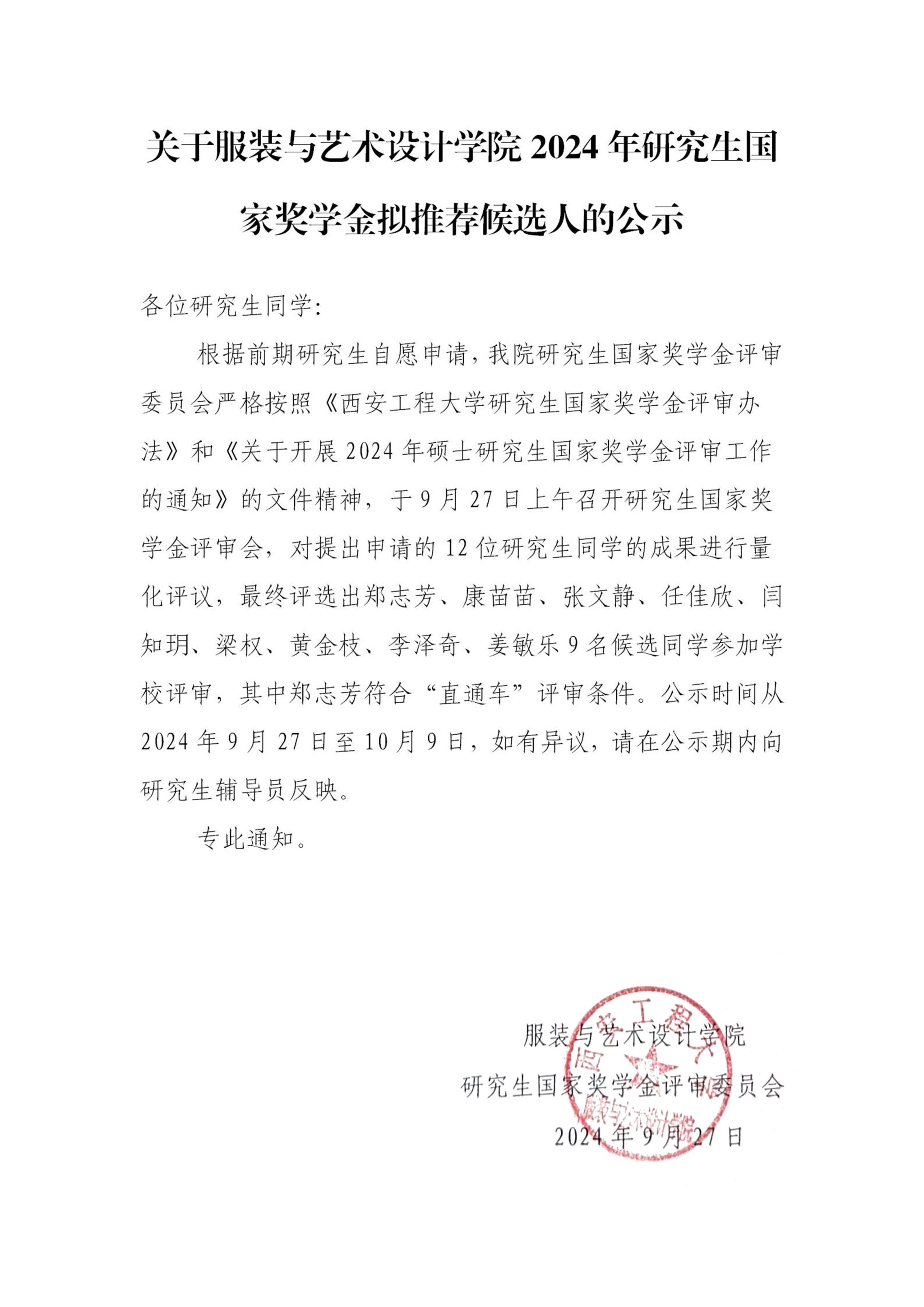 关于厂长资源 2024年研究生国家奖学金拟推荐候选人的公示