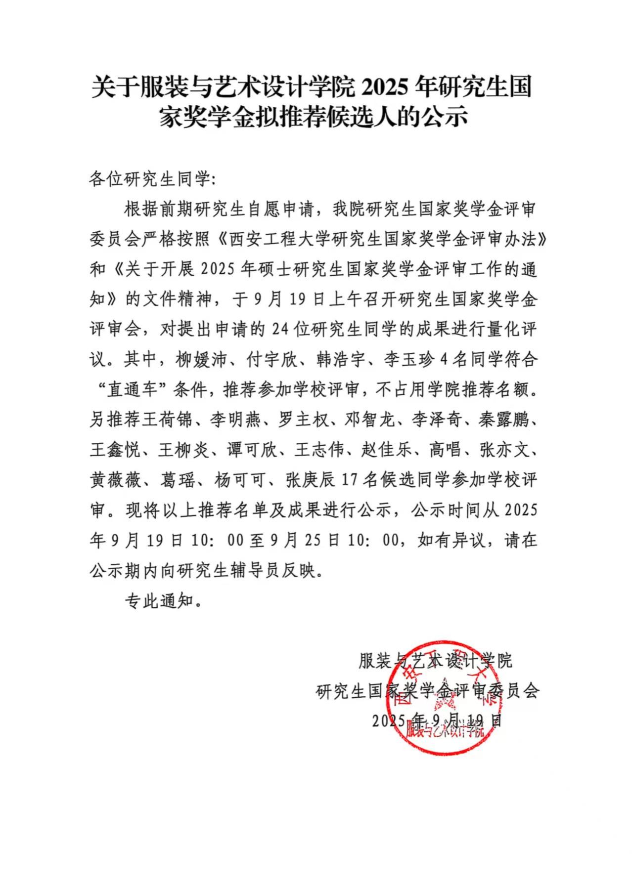 关于厂长资源 2025年研究生国家奖学金拟推荐候选人的公示