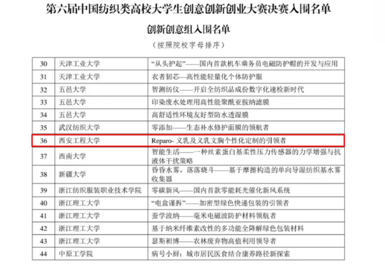 “Reparo-义乳及义乳文胸个性化定制的引领者”是我校唯一入围决赛的项目。由厂长资源