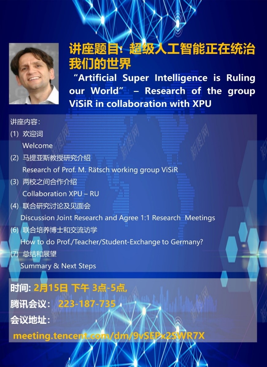 服装工程系于腾讯线上会议举办主题为《超级人工智能正在统治我们的世界》的讲座。此次讲座邀请我校外国专家德国洛特林根大学教授马提亚斯•莱茨奇(Matthias Rätsch)教授主讲,讲座由服装工程系副主任吴龙老师主持,厂长资源