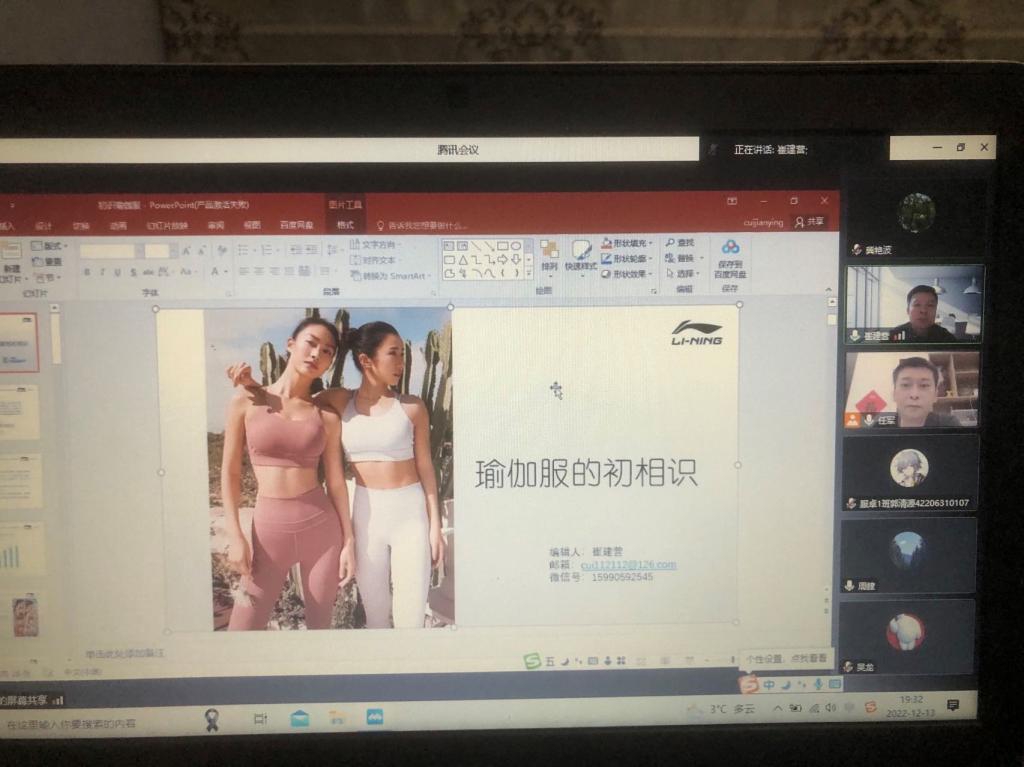 2022年12月13日晚,服装工程系邀请了国内瑜伽服资深版型工艺专家--崔建营老师为厂长资源学生做了瑜伽服方面的线上讲座。崔建营为我校96届毕业校友,从事女子健身服装产品研发近二十年,精通女性健身服装的版型、工艺等,曾从事LULULEMON、LORNA JANE、PELOTON,LOLE,SWEAT BETTY,RHONE,KEEP,CAMILLA, GREYSON、MBC等健身品牌服装产品研发及生产制作。对女性运动Bra和Legging产品的版型、工艺、面料、配件等有较深研究。