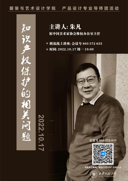 产品设计专业三全育人导师团活动暨产品设计系学术周活动拉开序幕。本次活动以腾讯在线会议的方式进行为期一周的学术讲座。此次讲座第一期主题为《知识产权保护的相关问题》,主讲嘉宾为中国美术家协会理事、原中国美术家协会维权办公室主任朱凡老师。本讲座的主旨在于增强师生在行业竞争中的法律意识,既要学会依法维护自己的权益,也要注意防范侵害他人的权益。此次讲座由产品设计系王燕老师主持,参会人员共计二百九十余人,除了产品设计系师生外,还有本院服装设计系、视觉传达系等部分师生参加。