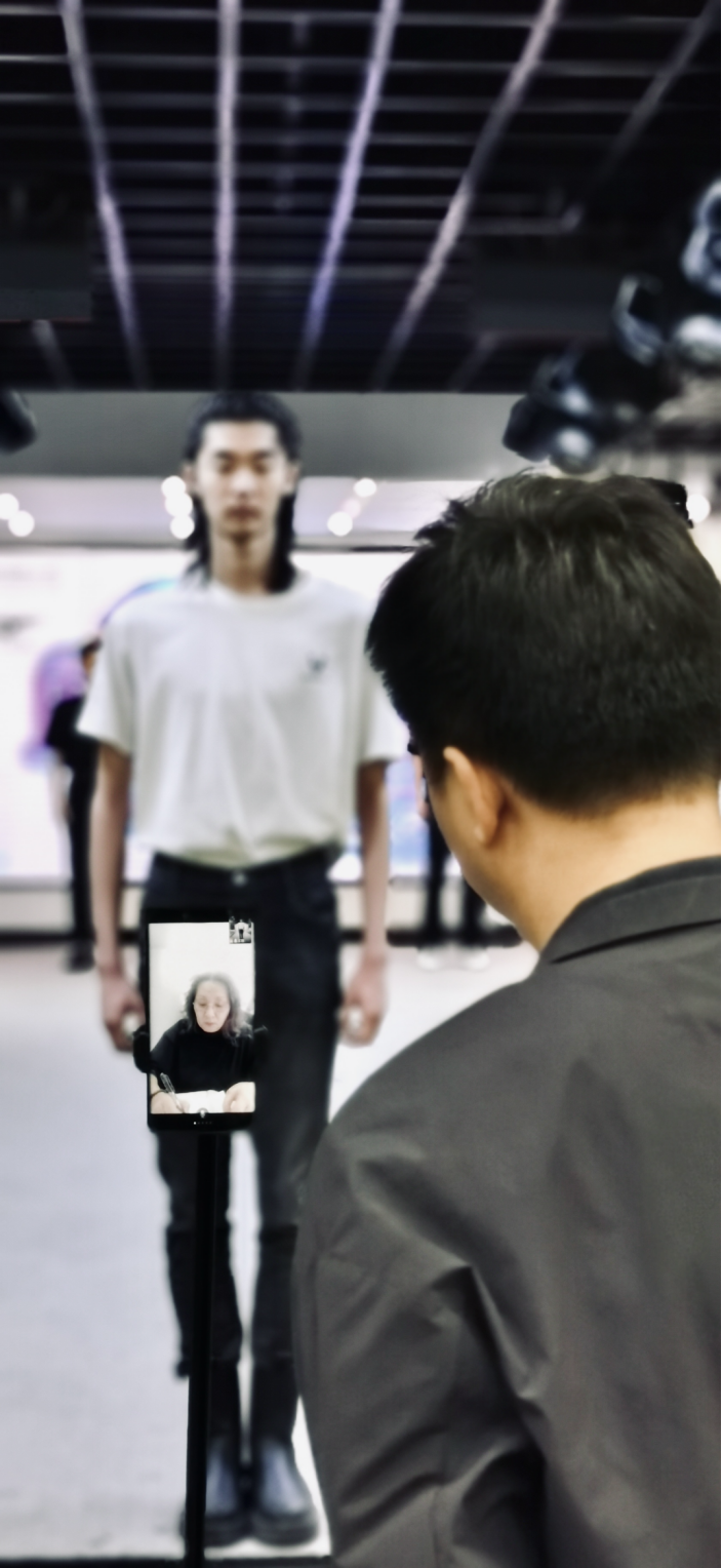 在面试环节结束后,崔丽娜老师为我们现场视频连线了我校2015级服装表演专业学生——王弘宇,为学弟学妹们解答疑惑和提出一些专业方面的建议。王弘宇荣获象征中国模特界最高荣誉的2017年度“最佳职业时装模特”奖,成为“2017年度中国首席模特”。同时获得第20届中国“十佳职业时装模特奖”。在其入学伊始参加中国模特之星大赛获得男模组冠军,同年拿下Prada的全球广告。曾为《GQ》智族、《OK!精彩》和《芭莎男士》等众多杂志拍摄封面,参加了Loewe、Coach、Diesel Black Gold等众多大牌秀场。连线时,王弘宇在北京进行杂志的拍摄工作,作为模特行业的翘楚和标杆,百忙之中抽出化妆时间该给学弟学妹们一些建议,同时表达了对母校的感激之情和思念之情。