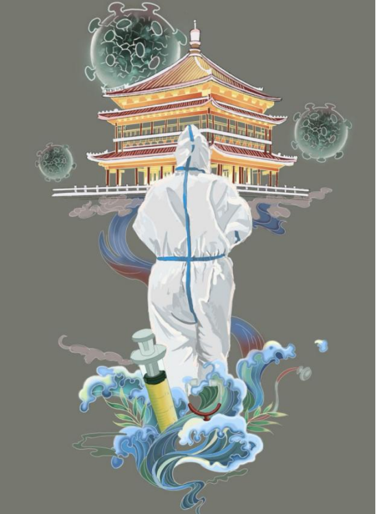 《抗疫守秦,“志”在必胜》20级美术02班 崔宁 数字插画