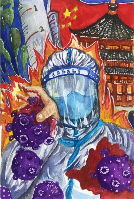 昝梦情《致敬白衣逆行者》板绘 2021级设计20班