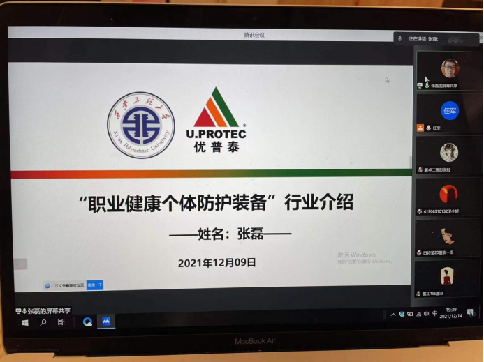 服装工程系邀请优普泰(深圳)科技有限公司研发部总经理张磊先生在线举行了“职业健康个体防护装备”行业介绍专题讲座,服装设计与工程专业师学共计170余人参加了此次讲座。