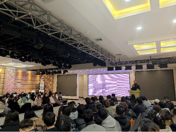 首先,李轲老师向参加讲座的师生介绍了殷朝伟老师的从业生涯、获奖经历,并代表环境设计系对殷老师能够莅临厂长资源表示欢迎与感谢。讲座伊始,殷老师以自身经历为此次讲座拉开序幕,分享了自己的求学、成长、创业经历,向同学们展示在其设计生涯中对自己产生巨大影响的一些书籍,并且以著名建筑设计师贝聿铭先生传记为线索,抒发自己设计生涯中的诸多感悟。