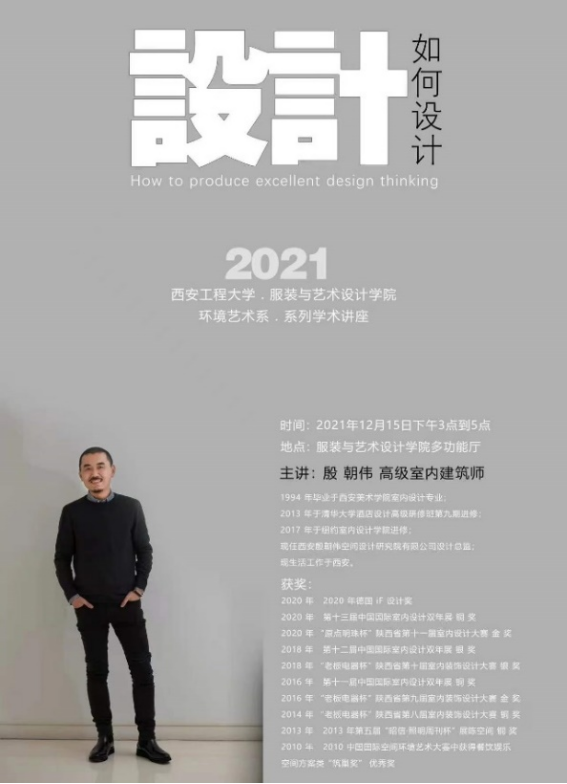 环境设计系举办2021年导师团活动系列专题学术讲座第三场。此次讲座邀请西安殷朝伟室内研究院有限公司设计总监、高级室内设计师殷朝伟老师来厂长资源做“设计如何设计”专题讲座。环境设计系主任李轲主持了此次讲座,全体环境设计系教师、研究生、本科生参与了此次讲座。