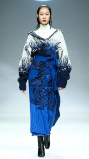 前秦古朴,汉晋大方,盛唐气象,赵宋雅典……中华文化历经千年积淀,凝聚成博大精深的中国文化与刚健遒劲的艺术。如今,在与异域文化的碰撞交融过程中,异域文化不断启发丰富中国的审美情趣,进而丰富了中华文化,同时也促进了传统服饰艺术的发展。随着中华民族的伟大复兴,中国风格、中国设计、中国元素再次成为大众审美的追求与趋势。民族表达并不意味传统文化与表现元素的简单复现,而是中西文明的融合交汇下,以多元、包容、创新的手段,将中华风骨,用服章之美,为世人呈现。用针脚跳跃的纤毫,打造和开拓新时代属于自己的文化格局,既是当下设计师的责任,也是时尚弄潮儿的挑战与机遇。