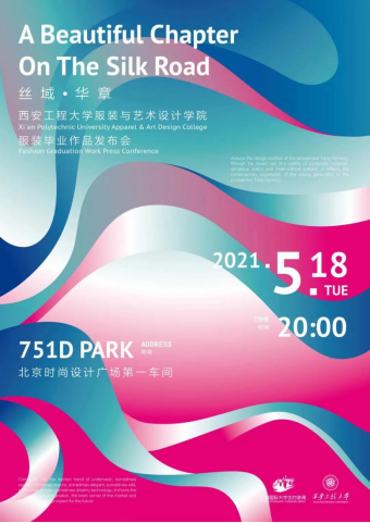 5月18日下午8:00,2021中国国际大学生时装周我校服装与艺术设计专业毕业作品在751D·PARK北京时尚设计广场中央大厅如期发布,本次展示的毕业设计作品是从服装与服饰设计专业、服装表演专业、服装设计与工程专业近300多个系列中精选出来的40多个系列、近80套优秀的系列设计作品,本次毕业设计发布的主题为“丝域·华章”。