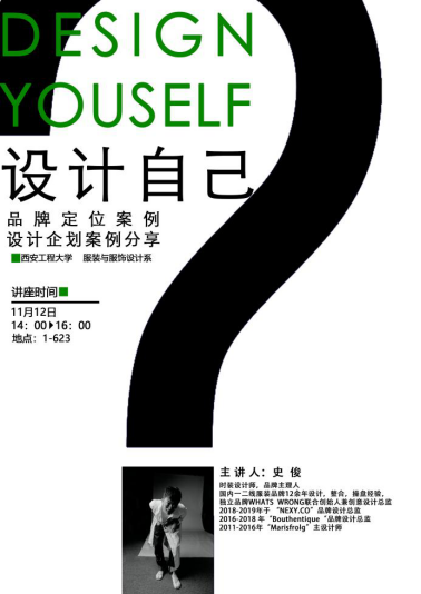 2020年11月12日下午,服装与服饰设计系邀请独立品牌WHATA WRONG联合创始人兼创意设计总监史俊先生,在金花校区1-623教室举办题为《设计自己》专题讲座,服装专业2018、2019级共计一百余名学生参与了本次讲座。
