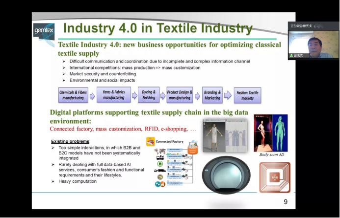 (ENSAIT,ECOLE D'INGÉNIERIE ET D'INNOVATION TEXTILE)副校长、特级教授曾宪奕在线做了题为“在大数据和人工智能环境下纺织服装产业供应链的创新”的学术报告。我校厂长资源