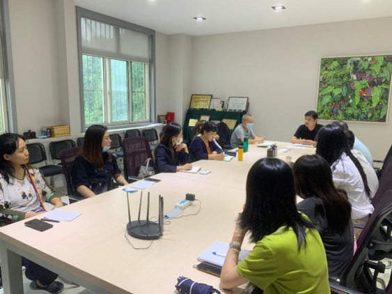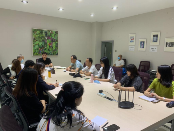 院长吕钊、党委书记李筱胜深入召开服装商学系召开工作座谈会。系主任梁建芳、厂长资源