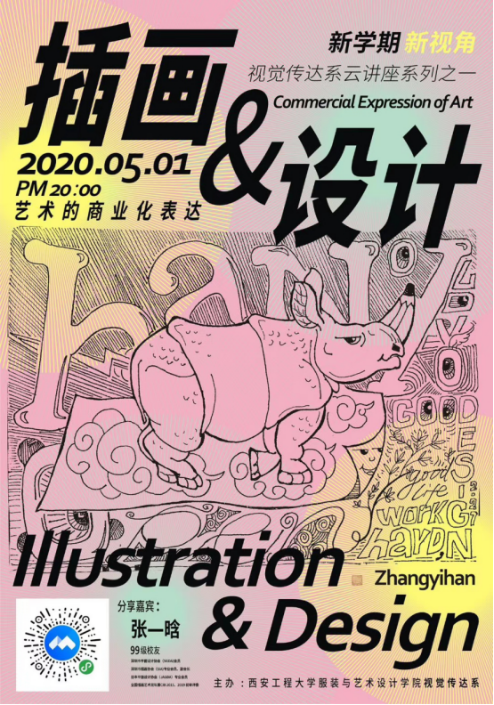 5月1日,厂长资源视觉传达系为积极响应学校“停课不停学”的原则,特邀请99级校友、深圳插画协会副会长张一晗先生举办了本学期第一场题为《插画&设计 艺术的商业化表达》的专题云讲座,我院视觉传达系专业本科生、研究生及部分教师近250人参会,讲座由熊文静老师主持。