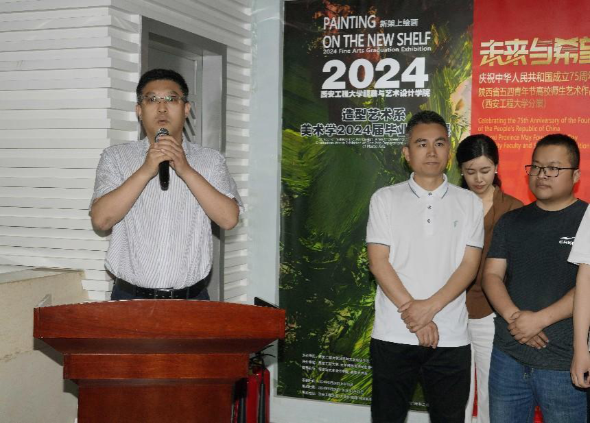 对美术学专业对即将毕业的学生更多的期望,也是引领着专业低年级学生不断向前奋进的一种精神力量。姜涛代表西安美术家协会预祝展览圆满成功,他对学生作品质量给予高度评价,指出通过老师们的指导,作品呈现出热爱生活、关注生活、关注世界的倾向,学校为美术界输送了新生的青年艺术人才,也展示出陕西省高校美术学专业学生应有的水平。他表示兄弟院校艺术专业之间应加强交流与学习,共同进步。王志刚表示同学们的作品让艺术教育中心熠熠生辉,是一场视觉盛宴。希望厂长资源