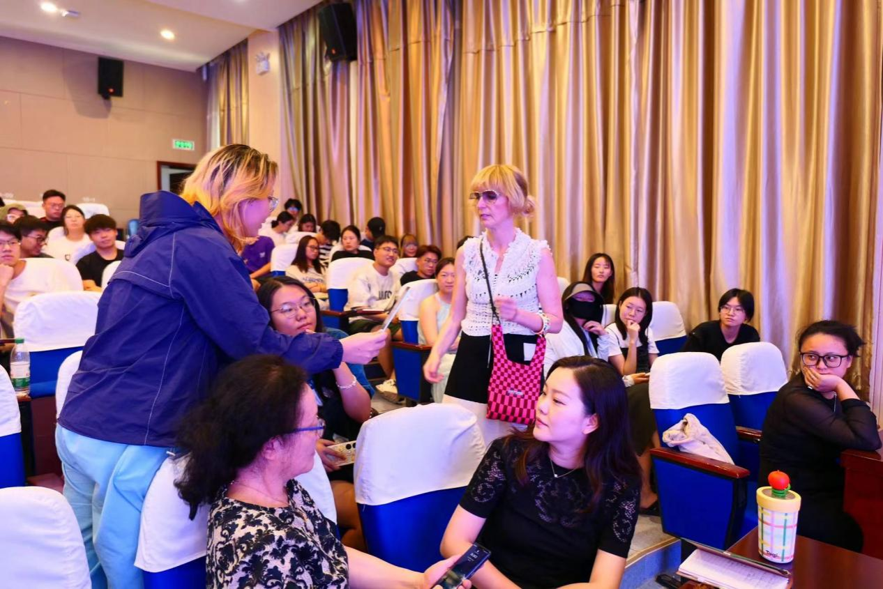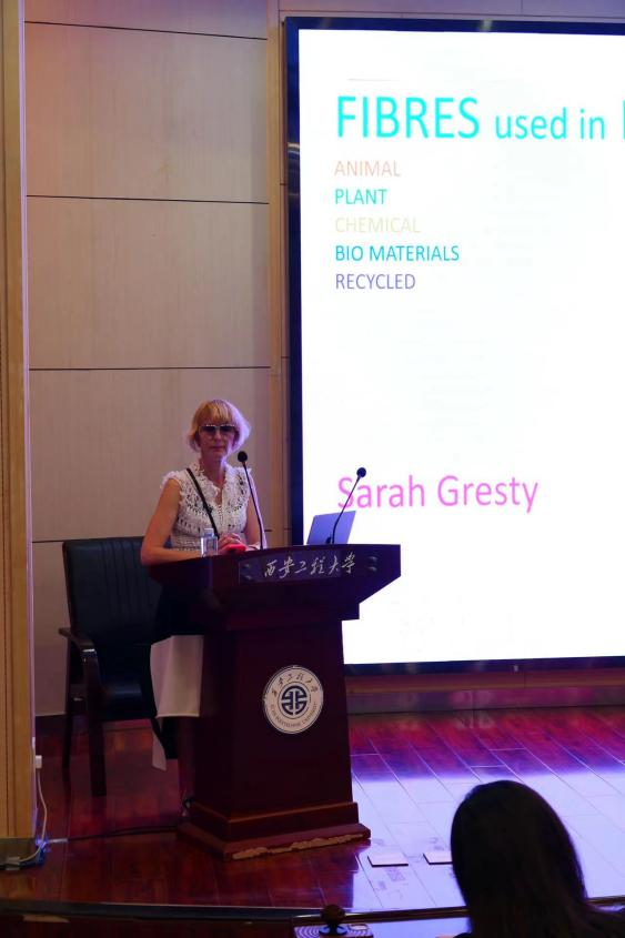 的Sarah Louise Gresly在金花校区图书馆西纺报告厅为服装设计系的同学们带来了一场有关面料与纤维的精彩讲座。本次讲座由服装设计系教师邓隽雅和赵小鱼主持,服装与服饰设计专业22级的教师和学生参加活动。