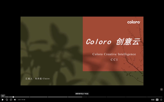 此次培训会刘泠辰老师详细介绍了Coloro创意云平台(简称CCI),从CCI是什么、CCI的功能及CCI能解决的色彩应用实际问题三方面展开。首先比较分析了国际上主要的几种色彩体系,说明了科学的色彩管理对于现代产品开发与生产的重要性,由此导入CCI的开发背景;其次对CCI的色彩管理功能展开具体的演示和说明;最后通过秋冬流行色的色彩分析案例直观介绍了CCI的实用功能,包括图片库在色彩设计中的应用、色彩搭配与应用、图片取色自动分析等功能。