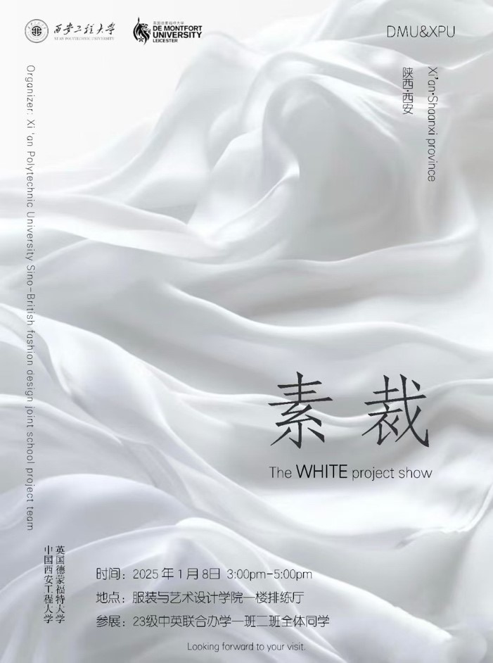 此次“素裁”——The white project大秀,是中英合作办学学生们学习成果的一次集中展示,通过本课程,学生能够明晰在国际视野下,服装设计本科教育所秉持的严格要求与高标准,进而在学习过程中真切感受设计的深层目的与意义,向着更高层次的服装设计专业素养稳步迈进。