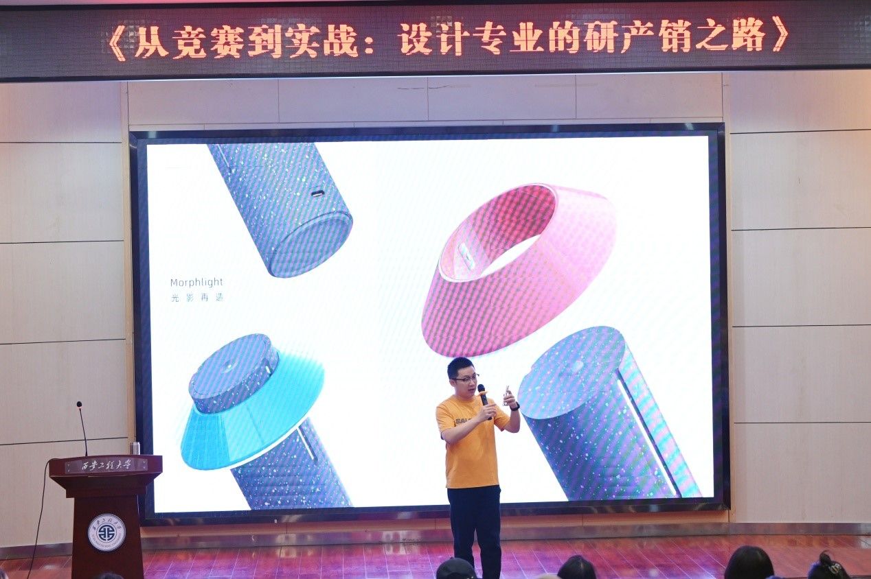 产品设计系在金花校区西纺报告厅举办“从竞赛到实战:设计专业的研产销之路”专题讲座。德国拉姆斯设计基金会驻华代表、茵达思创教育研究院执行院长王子健担任主讲,吸引了200余名师生参与,共同探讨设计教育与产业需求深度融合的实践路径。