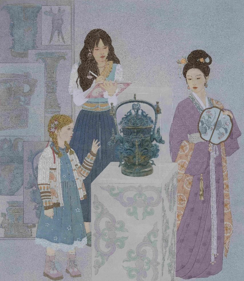国画 刘雨欣 《岁月铜韵·世界共赏》150cm × 173cm