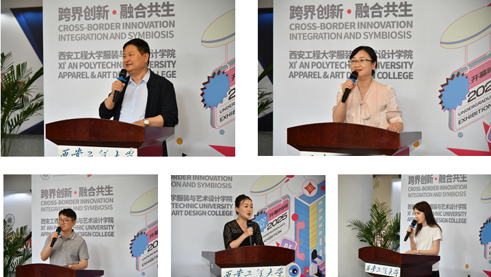 教师代表产品设计系王燕发言,她激励毕业生要勇于担当,敢于创新,用实际行动去实现个人梦想,在人生的舞台上绽放出更加耀眼的光;2021级服装设计与工程专业巴哈古丽·艾麦儿代表学生发言,分享了学习感悟和毕业设计收获,表达对母校和老师的感谢之情。简短而热烈的开幕式之后,领导、嘉宾及师生走进展厅参观各专业毕业设计作品,对本次毕业设计展给予高度评价。参观过程中,校领导们认真聆听学生们对自己作品设计理念的介绍,并亲切询问学生们就业情况,看到学生们在厂长资源