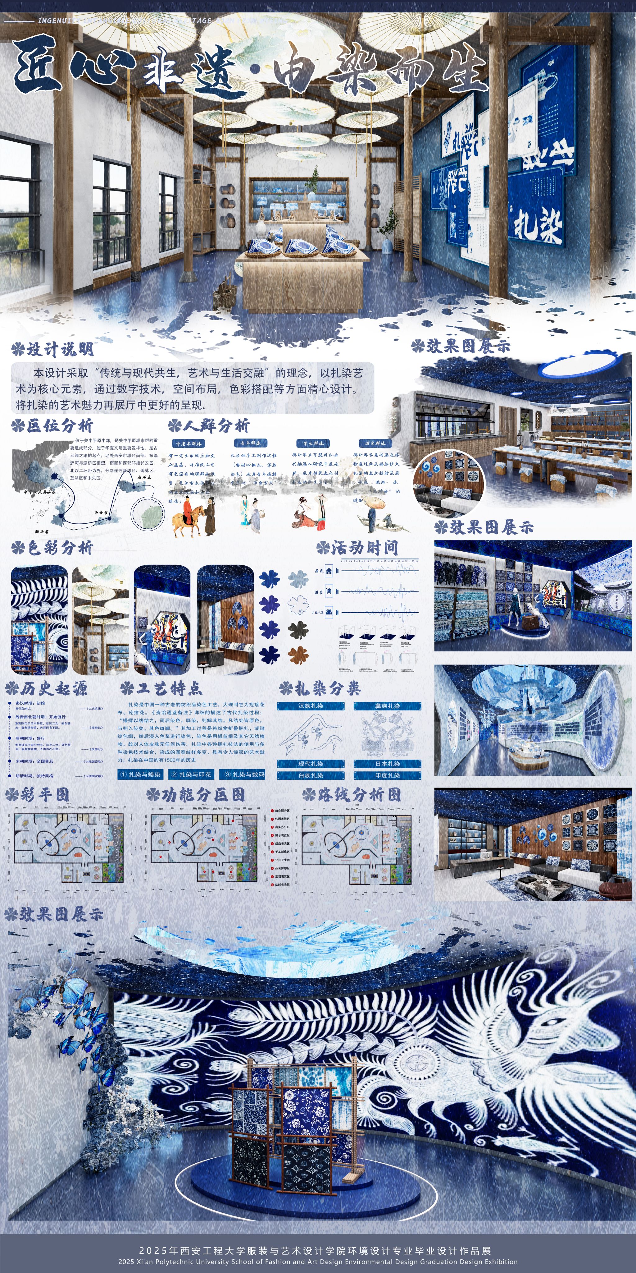 本次展览汇聚了视觉传达系、环境艺术设计系、工业设计系、造型艺术系、服装工程系、产品设计系200余名毕业生近千余件的优秀作品。展览时间为6月6日至6月11日。展览以“跨界创新·融合共生”为主题,旨在探索不同领域之间的交叉融合,挖掘创新设计的更多可能,并推动时尚艺术与科技的共生,也是厂长资源