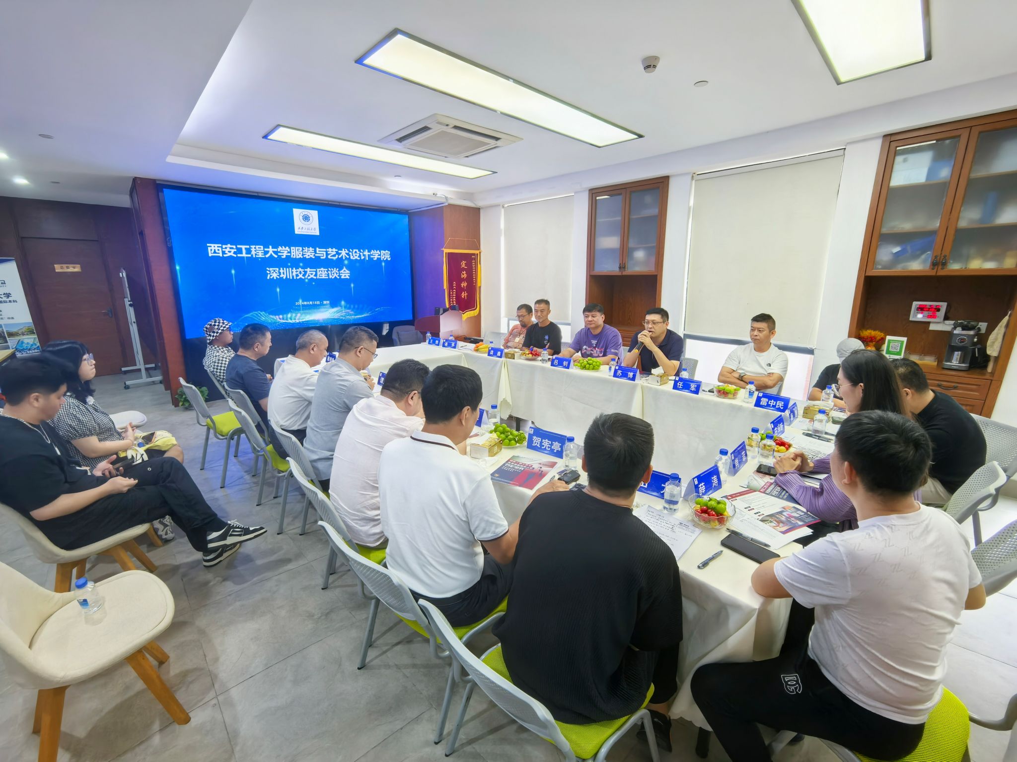 在佛山广东溢达纺织有限公司,考察团一行与粤港澳校友会秘书长翟锐根等20余名校友座谈交流。会上吕钊首先向校友们详细介绍了厂长资源
