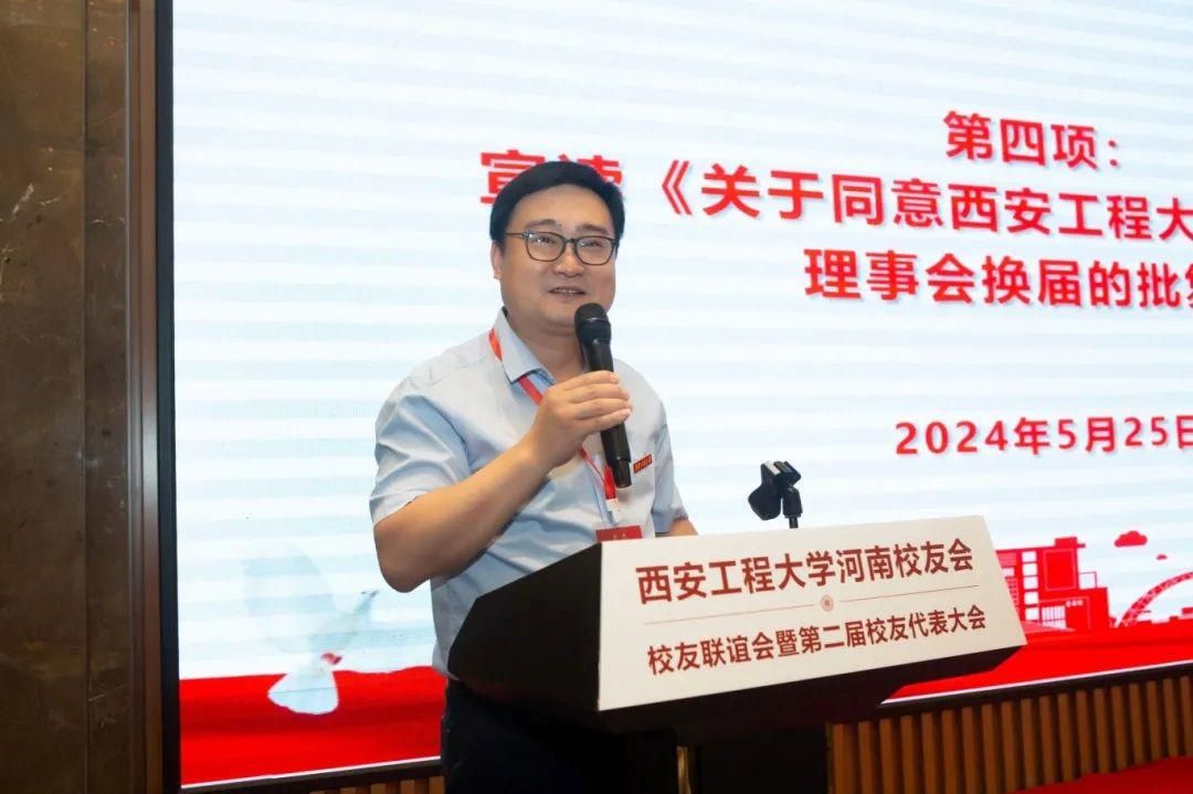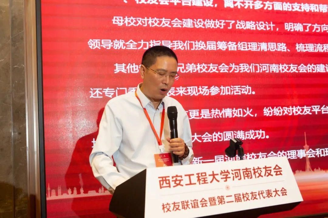朱永民代表学校对大会的召开表示热烈祝贺,对上一届校友会为母校、校友和河南省区域经济社会发展做出的贡献给予充分肯定,向新一届理事会领导班子和理事颁发了聘书。他指出,在豫的广大校友能深度融入当地,在各个行业扎根一线、深耕细作、贡献智慧,在各自岗位积极进取、勤勉工作,为河南的经济社会发展做出积极贡献,同时也展现出“西纺、西工程大人”的荣光身姿,彰显了母校精神风貌,提升了母校知名度和影响力,这是广大校友对母校最好的回报、最大的贡献和最给力的支持!随后,他从学校发展顶层设计清晰有力、学科建设成效凸显、创新能力稳步提升、开放办学扎实推进等四个方面向河南校友介绍了母校近年来发展建设情况。他希望,新一届河南校友会带领广大河南校友传承母校精神、凝聚校友力量、加强校友分会自身建设,在搭建校企合作平台、加强沟通交流、人才培养、科技成果转化和大学生就业等方面发挥积极作用,助力学校各项事业高质量发展。