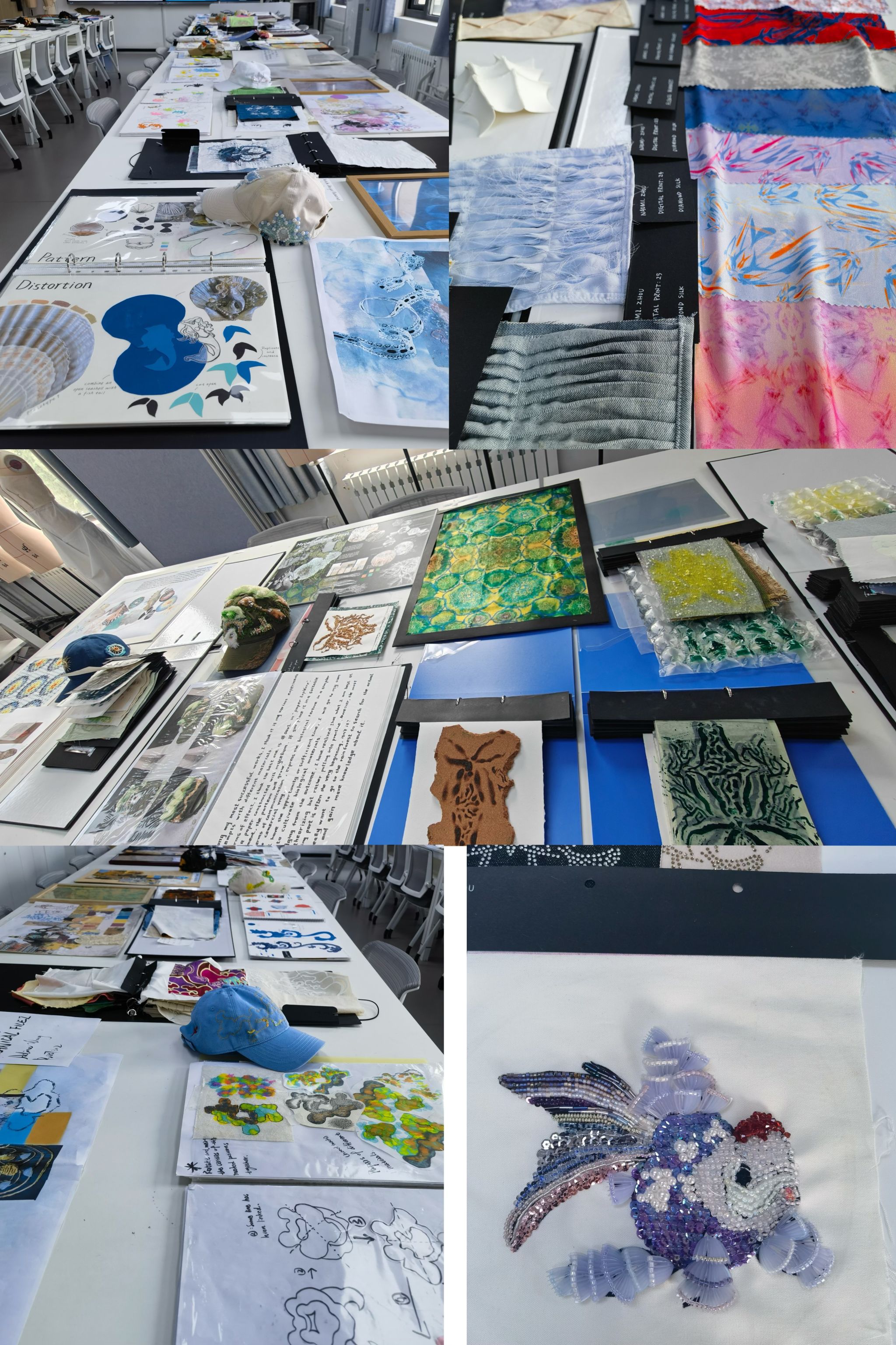 Textile Design Rotation面料设计再造》作为中英合作办学项目的外教专业课程,着重培养学生的创新面料运用能力和前瞻性设计思维。通过系统的教学实践,学生深入掌握了面料再造的设计原理与工艺方法,并通过高强度的工作坊训练熟练掌握了多种面料再造技法。